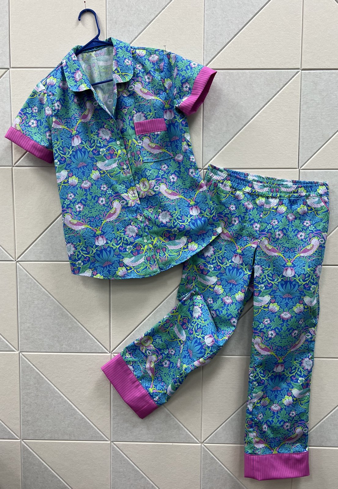 If you want to make your pajamas like the store sample, using contrast fabric, you will need a ½ yard of your contrast (pop) fabric.