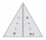 Cut 30 degree and 60 degree angles up to a height of 12in.Instructions included. Easy-to-read black markings every1/4in. Embedded Gripper Dots hold fabric while cutting.Exclusive line. Independents only. Made in the USA.