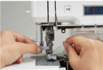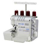 JUKI has added features with you in mind, including a wide throat area, a bright workspace with color temperature adjustment, a magnet needle tray, an LCD screen, and 2- to 3- thread conversion. Also, new features allow you to operate the serger by knee lift lever and foot controller with foot switch functions.